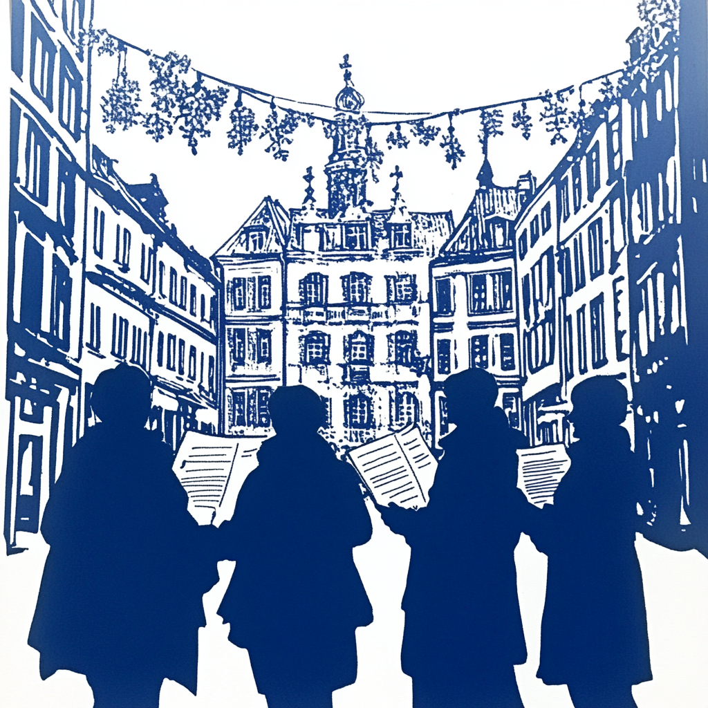 Made with Midjourney: https://s.mj.run/1Jx17tNIIEo sketch, Christmas Carolers in an old town square, the carolers are holding sheet music, in inky pen styling, minimalistic --chaos 20 --ar 1:1 --style raw --sref 3362174710 https://s.mj.run/9sQtGhWa-rw --weird 5 --v 6.1